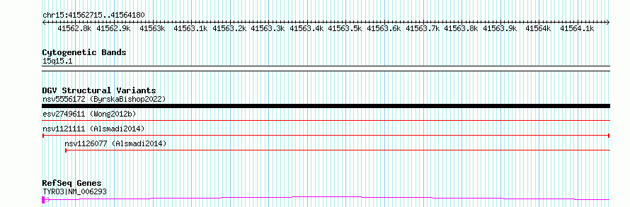 Variant DetailsVariant: nsv1121111| Internal ID | 19277477 | | Landmark | | | Location Information | | | Cytoband | 15q15.1 | | Allele length | | Assembly | Allele length | | hg38 | 1466 | | hg19 | 1466 |
