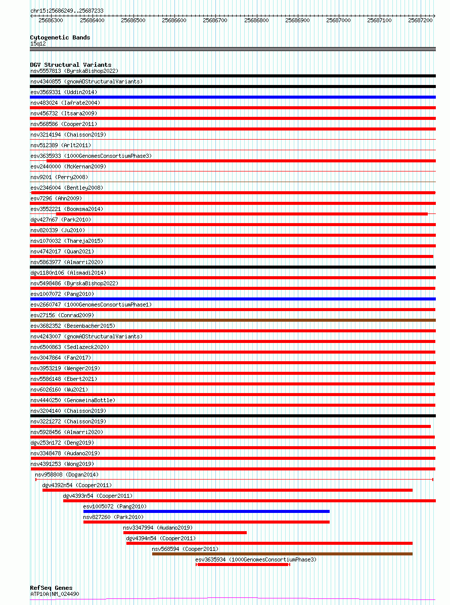 Variant DetailsVariant: nsv1121145| Internal ID | 19250203 | | Landmark | | | Location Information | | | Cytoband | 15q12 | | Allele length | | Assembly | Allele length | | hg38 | 985 | | hg19 | 985 |