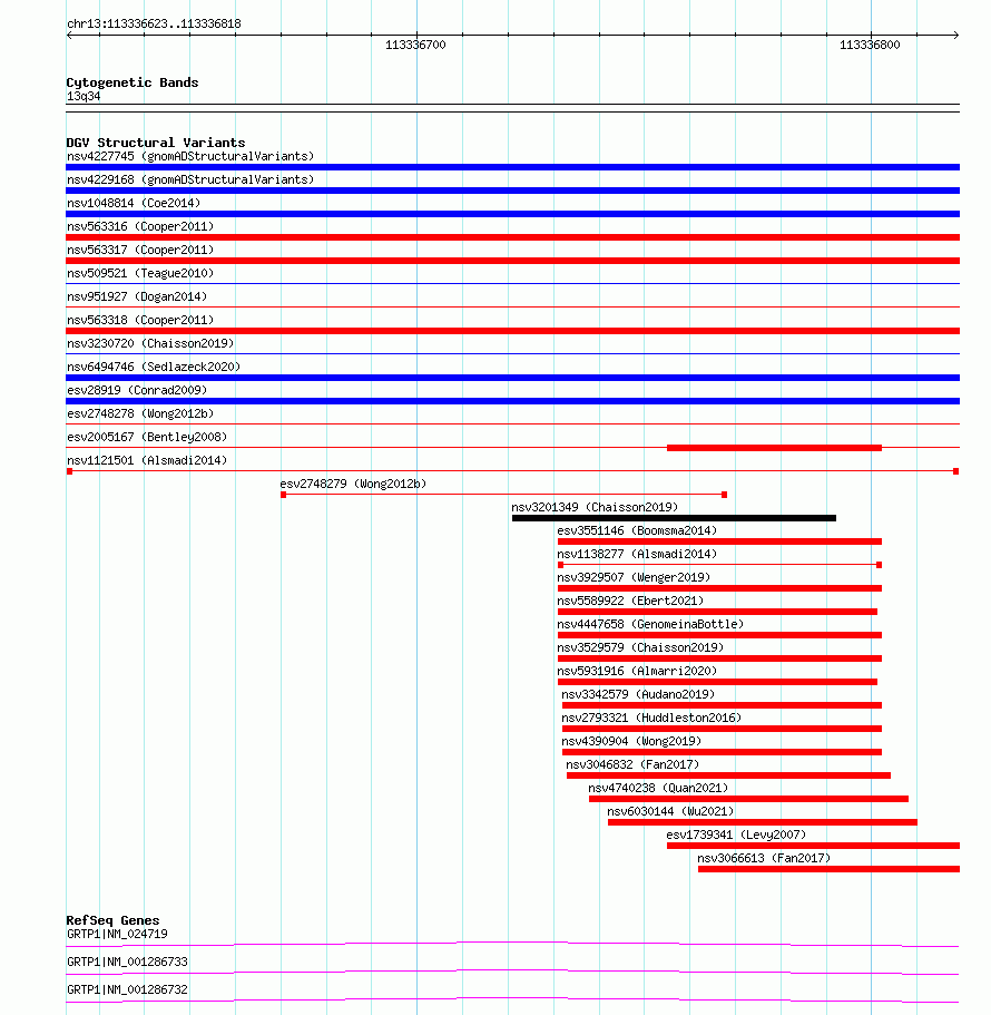 Variant DetailsVariant: nsv1121501| Internal ID | 19285287 | | Landmark | | | Location Information | | | Cytoband | 13q34 | | Allele length | | Assembly | Allele length | | hg38 | 196 | | hg19 | 196 |