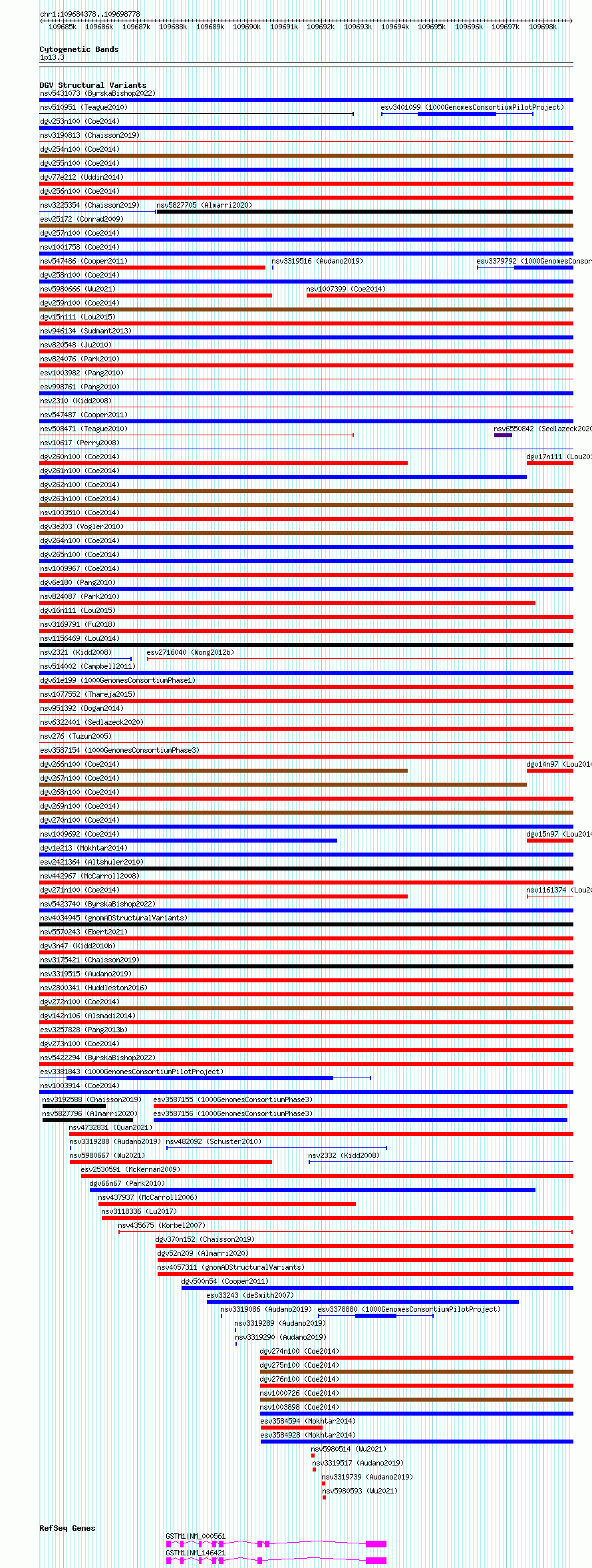 Variant DetailsVariant: nsv1121767| Internal ID | 19281342 | | Landmark | | | Location Information | | | Cytoband | 1p13.3 | | Allele length | | Assembly | Allele length | | hg38 | 14401 | | hg19 | 14401 |