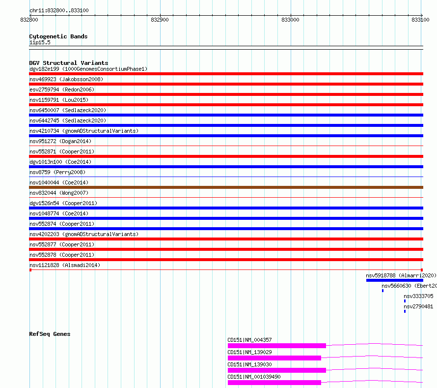 Variant DetailsVariant: nsv1121828| Internal ID | 19280619 | | Landmark | | | Location Information | | | Cytoband | 11p15.5 | | Allele length | | Assembly | Allele length | | hg38 | 301 | | hg19 | 301 |