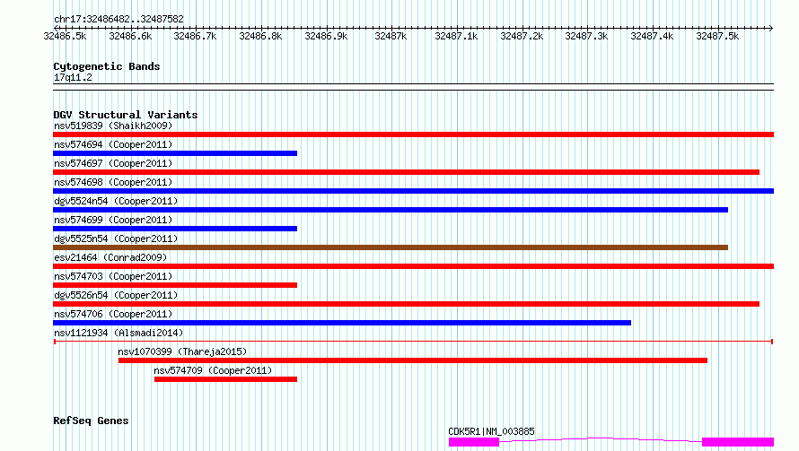 Variant DetailsVariant: nsv1121934| Internal ID | 18923017 | | Landmark | | | Location Information | | | Cytoband | 17q11.2 | | Allele length | | Assembly | Allele length | | hg38 | 1101 | | hg19 | 1101 |