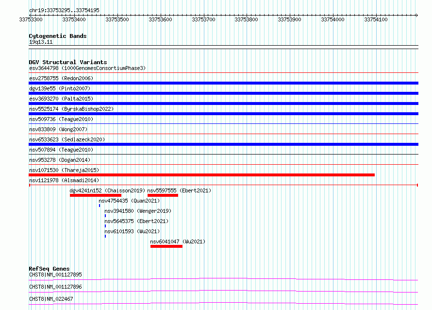 Variant DetailsVariant: nsv1121978| Internal ID | 19286850 | | Landmark | | | Location Information | | | Cytoband | 19q13.11 | | Allele length | | Assembly | Allele length | | hg38 | 901 | | hg19 | 901 |