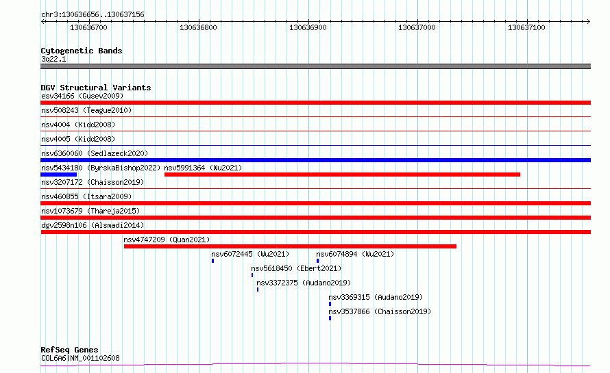 Variant DetailsVariant: nsv1122070| Internal ID | 19247824 | | Landmark | | | Location Information | | | Cytoband | 3q22.1 | | Allele length | | Assembly | Allele length | | hg38 | 501 | | hg19 | 501 |