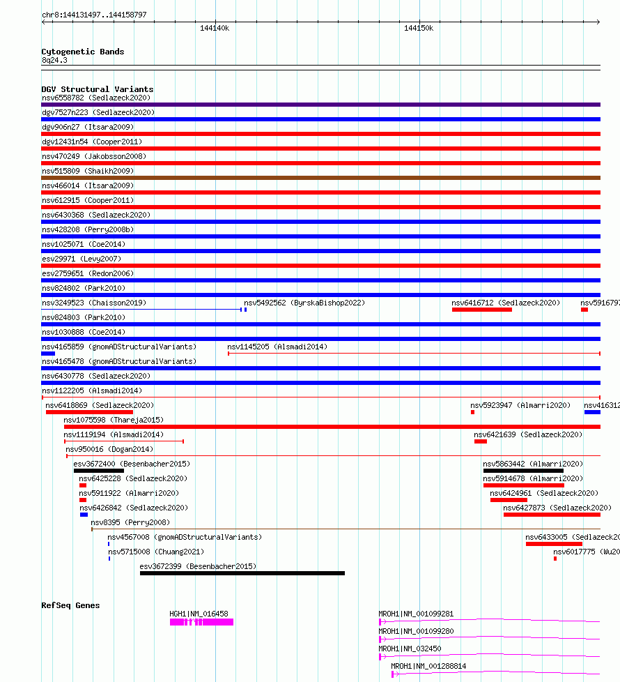 Variant DetailsVariant: nsv1122205| Internal ID | 19275332 | | Landmark | | | Location Information | | | Cytoband | 8q24.3 | | Allele length | | Assembly | Allele length | | hg38 | 27301 | | hg19 | 27301 |