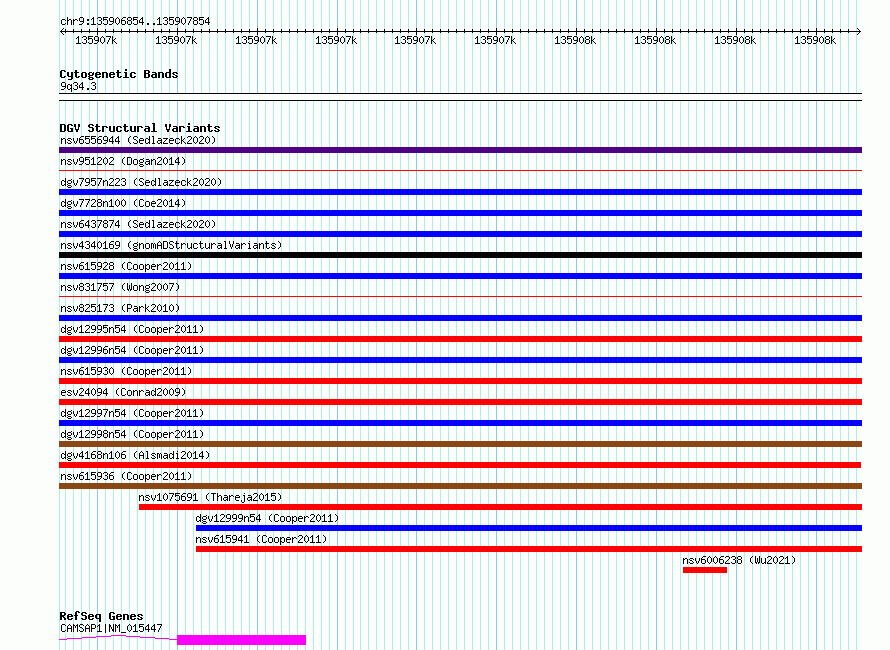Variant DetailsVariant: nsv1122249| Internal ID | 19262185 | | Landmark | | | Location Information | | | Cytoband | 9q34.3 | | Allele length | | Assembly | Allele length | | hg38 | 1001 | | hg19 | 1001 |