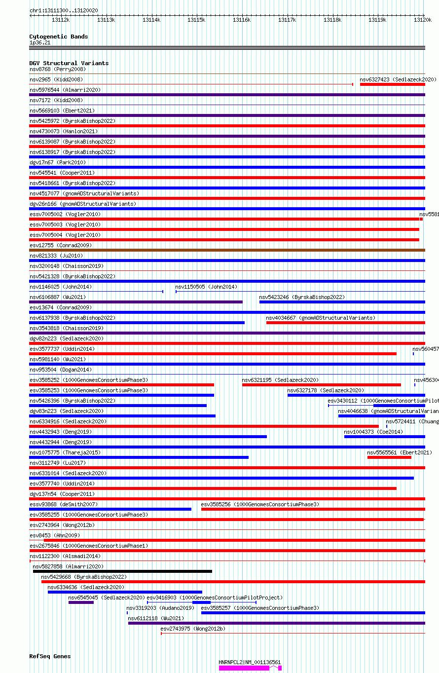 Variant DetailsVariant: nsv1122300| Internal ID | 19274056 | | Landmark | | | Location Information | | | Cytoband | 1p36.21 | | Allele length | | Assembly | Allele length | | hg38 | 8721 | | hg19 | 8722 |
