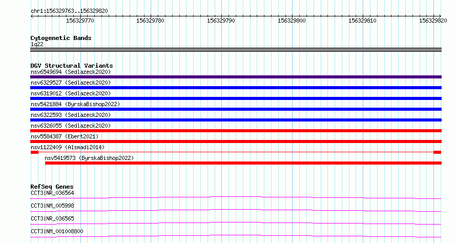Variant DetailsVariant: nsv1122409| Internal ID | 19248334 | | Landmark | | | Location Information | | | Cytoband | 1q22 | | Allele length | | Assembly | Allele length | | hg38 | 58 | | hg19 | 58 |