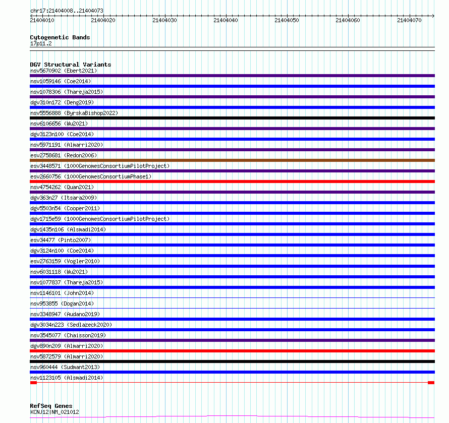 Variant DetailsVariant: nsv1123105| Internal ID | 19268175 | | Landmark | | | Location Information | | | Cytoband | 17p11.2 | | Allele length | | Assembly | Allele length | | hg38 | 66 | | hg19 | 66 |