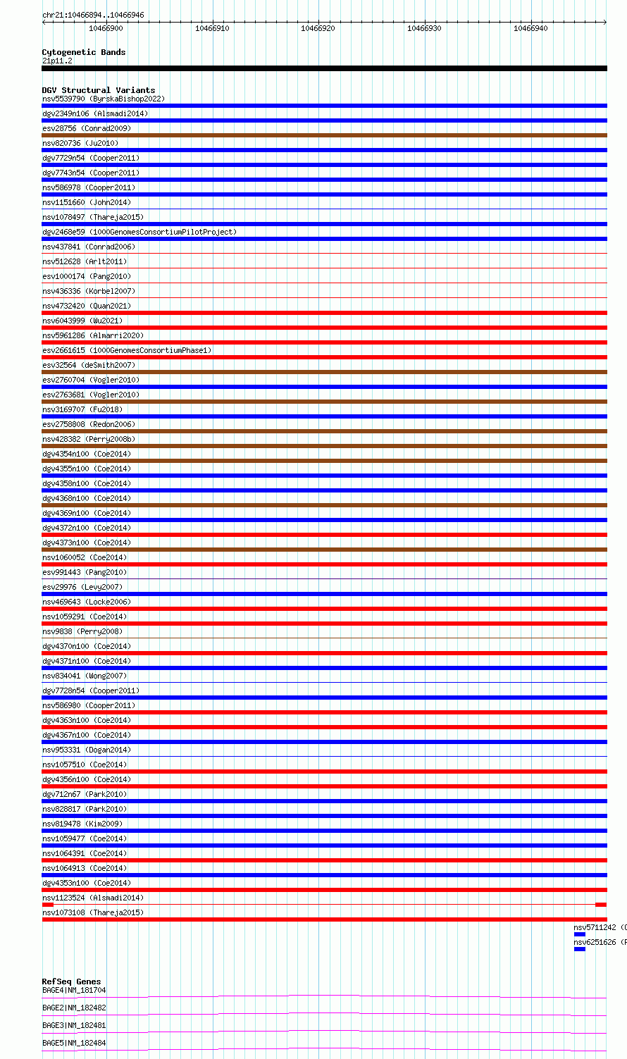 Variant DetailsVariant: nsv1123524| Internal ID | 19284636 | | Landmark | | | Location Information | | | Cytoband | 21p11.1 | | Allele length | | Assembly | Allele length | | hg38 | 53 | | hg19 | 53 |