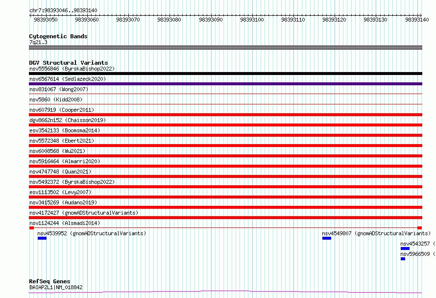 Variant DetailsVariant: nsv1124244| Internal ID | 19264014 | | Landmark | | | Location Information | | | Cytoband | 7q22.1 | | Allele length | | Assembly | Allele length | | hg38 | 95 | | hg19 | 95 |