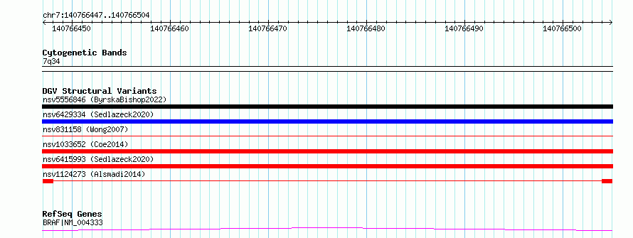 Variant DetailsVariant: nsv1124273| Internal ID | 19284572 | | Landmark | | | Location Information | | | Cytoband | 7q34 | | Allele length | | Assembly | Allele length | | hg38 | 58 | | hg19 | 58 |