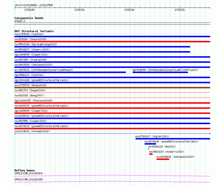 Variant DetailsVariant: nsv1124631| Internal ID | 19286410 | | Landmark | | | Location Information | | | Cytoband | 10q26.3 | | Allele length | | Assembly | Allele length | | hg38 | 3901 | | hg19 | 3901 |