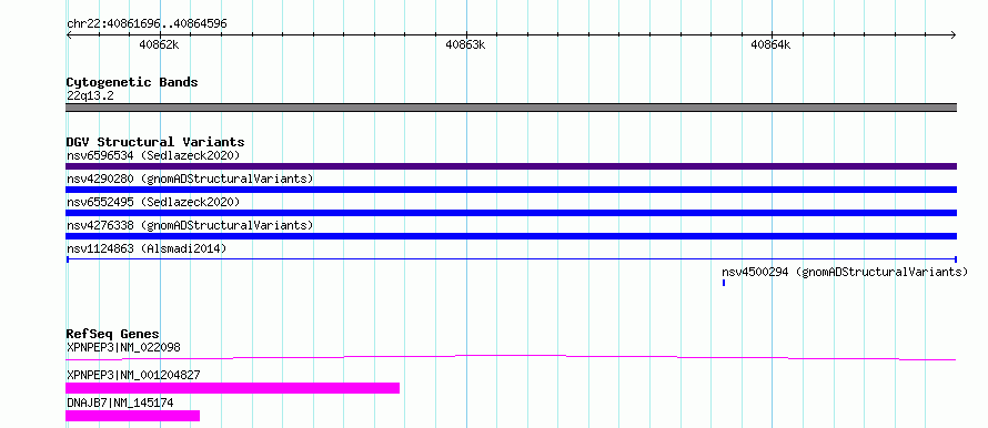 Variant DetailsVariant: nsv1124863| Internal ID | 19287128 | | Landmark | | | Location Information | | | Cytoband | 22q13.2 | | Allele length | | Assembly | Allele length | | hg38 | 2901 | | hg19 | 2901 |
