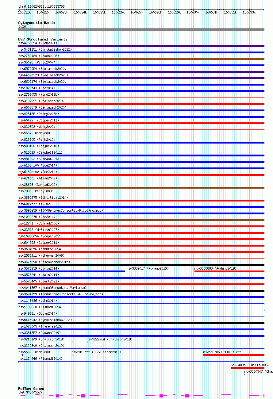Variant DetailsVariant: nsv1124946| Internal ID | 19251438 | | Landmark | | | Location Information | | | Cytoband | 6q26 | | Allele length | | Assembly | Allele length | | hg38 | 13101 | | hg19 | 13101 |
