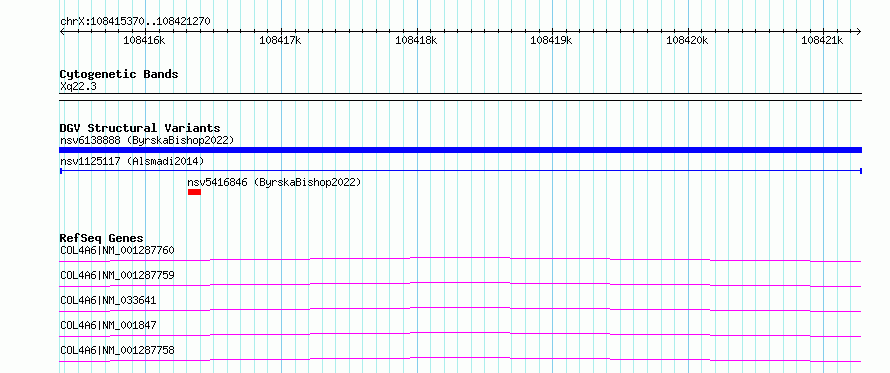 Variant DetailsVariant: nsv1125117| Internal ID | 19253976 | | Landmark | | | Location Information | | | Cytoband | Xq22.3 | | Allele length | | Assembly | Allele length | | hg38 | 5901 | | hg19 | 5901 |