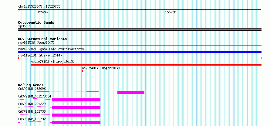 Variant DetailsVariant: nsv1126181| Internal ID | 19253903 | | Landmark | | | Location Information | | | Cytoband | 1p36.21 | | Allele length | | Assembly | Allele length | | hg38 | 1901 | | hg19 | 1901 |