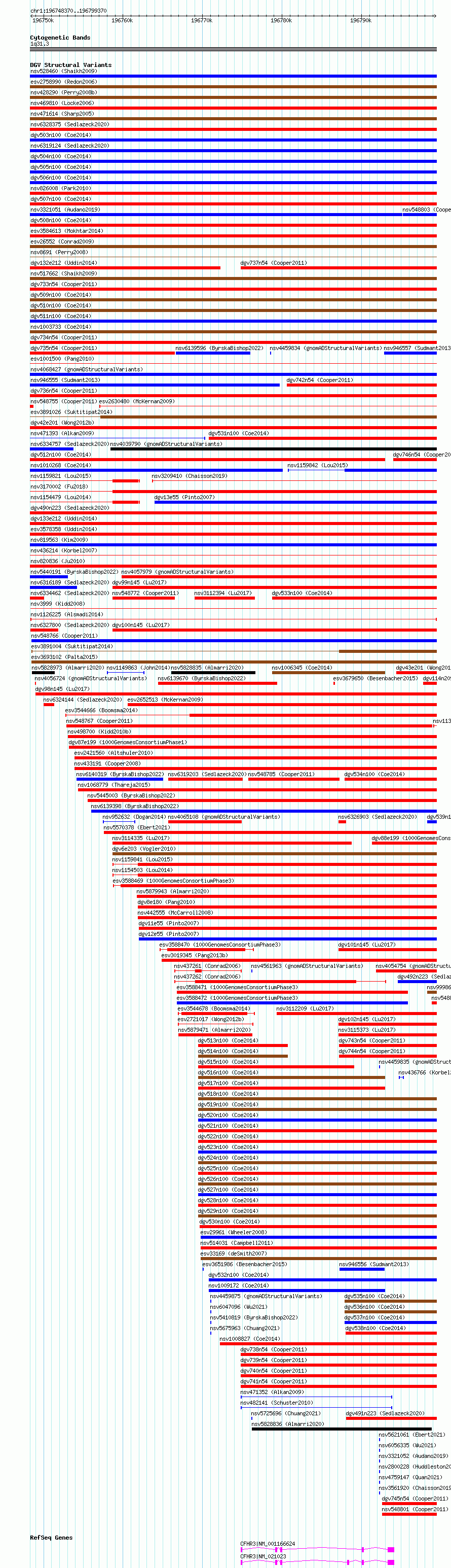 Variant DetailsVariant: nsv1126225| Internal ID | 19274452 | | Landmark | | | Location Information | | | Cytoband | 1q31.3 | | Allele length | | Assembly | Allele length | | hg38 | 51001 | | hg19 | 51001 |