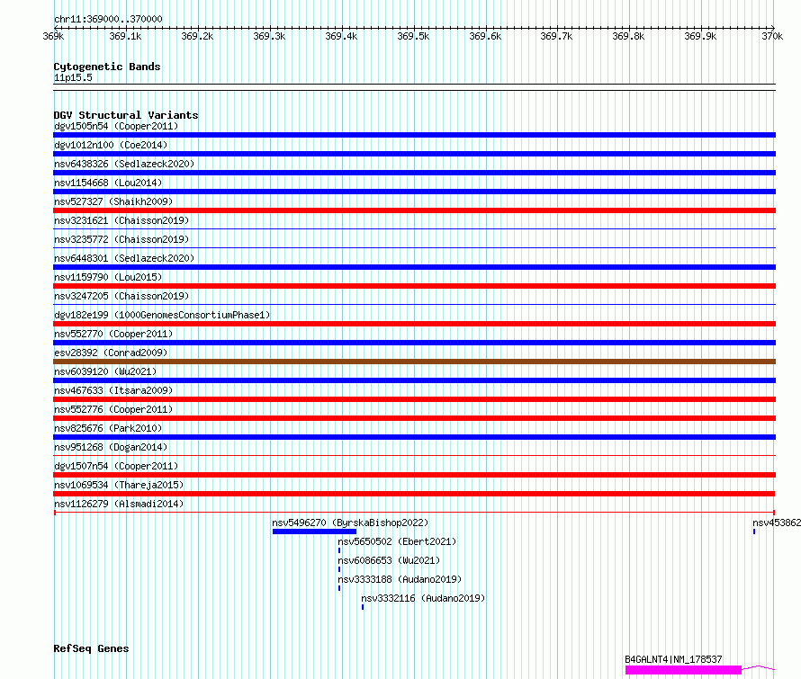 Variant DetailsVariant: nsv1126279| Internal ID | 19275067 | | Landmark | | | Location Information | | | Cytoband | 11p15.5 | | Allele length | | Assembly | Allele length | | hg38 | 1001 | | hg19 | 1001 |