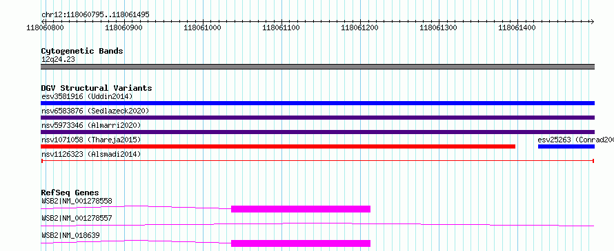 Variant DetailsVariant: nsv1126323| Internal ID | 19272061 | | Landmark | | | Location Information | | | Cytoband | 12q24.23 | | Allele length | | Assembly | Allele length | | hg38 | 701 | | hg19 | 701 |