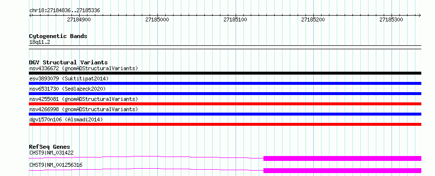 Variant DetailsVariant: nsv1126479| Internal ID | 19280630 | | Landmark | | | Location Information | | | Cytoband | 18q11.2 | | Allele length | | Assembly | Allele length | | hg38 | 501 | | hg19 | 501 |