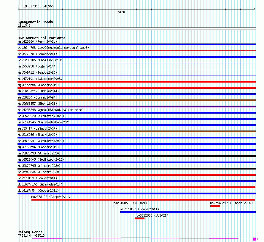 Variant DetailsVariant: nsv1126492| Internal ID | 19254975 | | Landmark | | | Location Information | | | Cytoband | 19p13.3 | | Allele length | | Assembly | Allele length | | hg38 | 1601 | | hg19 | 1601 |