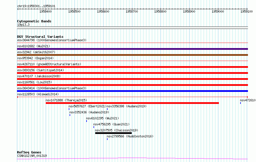 Variant DetailsVariant: nsv1126503| Internal ID | 19250074 | | Landmark | | | Location Information | | | Cytoband | 19p13.3 | | Allele length | | Assembly | Allele length | | hg38 | 801 | | hg19 | 801 |
