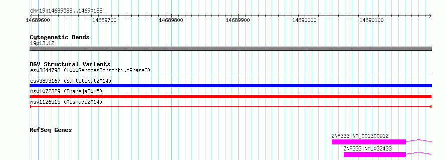 Variant DetailsVariant: nsv1126515| Internal ID | 18913077 | | Landmark | | | Location Information | | | Cytoband | 19p13.12 | | Allele length | | Assembly | Allele length | | hg38 | 601 | | hg19 | 601 |