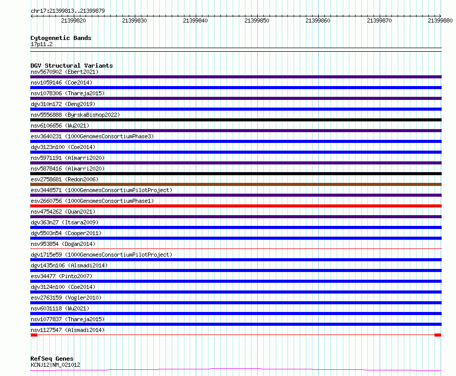 Variant DetailsVariant: nsv1127547| Internal ID | 19284919 | | Landmark | | | Location Information | | | Cytoband | 17p11.2 | | Allele length | | Assembly | Allele length | | hg38 | 67 | | hg19 | 67 |
