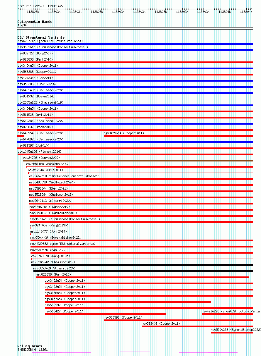 Variant DetailsVariant: nsv1128708| Internal ID | 19284700 | | Landmark | | | Location Information | | | Cytoband | 13q34 | | Allele length | | Assembly | Allele length | | hg38 | 1101 | | hg19 | 1101 |