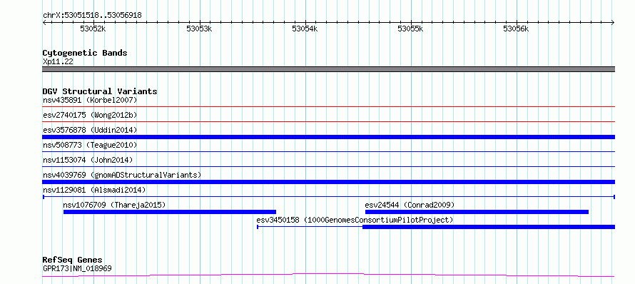 Variant DetailsVariant: nsv1129081| Internal ID | 18940409 | | Landmark | | | Location Information | | | Cytoband | Xp11.22 | | Allele length | | Assembly | Allele length | | hg38 | 5401 | | hg19 | 5401 |
