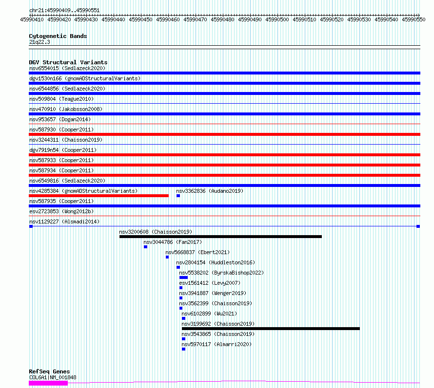 Variant DetailsVariant: nsv1129227| Internal ID | 19255061 | | Landmark | | | Location Information | | | Cytoband | 21q22.3 | | Allele length | | Assembly | Allele length | | hg38 | 143 | | hg19 | 143 |