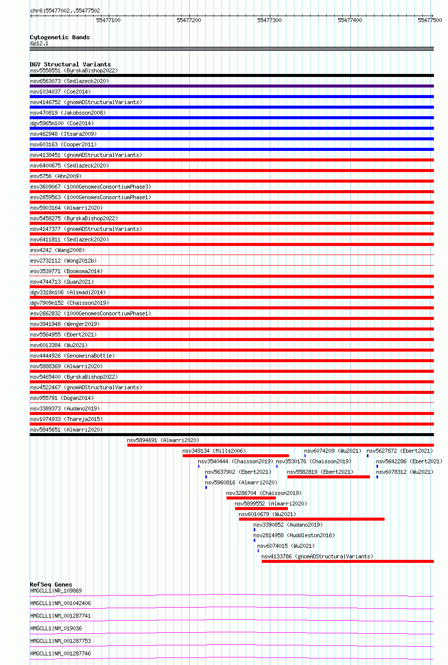 Variant DetailsVariant: nsv1129289| Internal ID | 19275640 | | Landmark | | | Location Information | | | Cytoband | 6p12.1 | | Allele length | | Assembly | Allele length | | hg38 | 501 | | hg19 | 501 |
