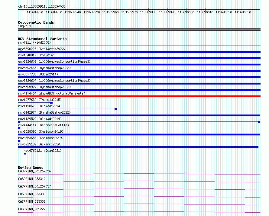 Variant DetailsVariant: nsv1129502| Internal ID | 19251275 | | Landmark | | | Location Information | | | Cytoband | 10q25.3 | | Allele length | | Assembly | Allele length | | hg38 | 128 | | hg19 | 128 |
