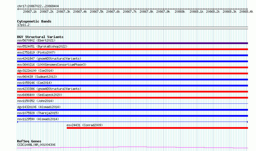 Variant DetailsVariant: nsv1129590| Internal ID | 19276054 | | Landmark | | | Location Information | | | Cytoband | 17p11.2 | | Allele length | | Assembly | Allele length | | hg38 | 1383 | | hg19 | 1383 |