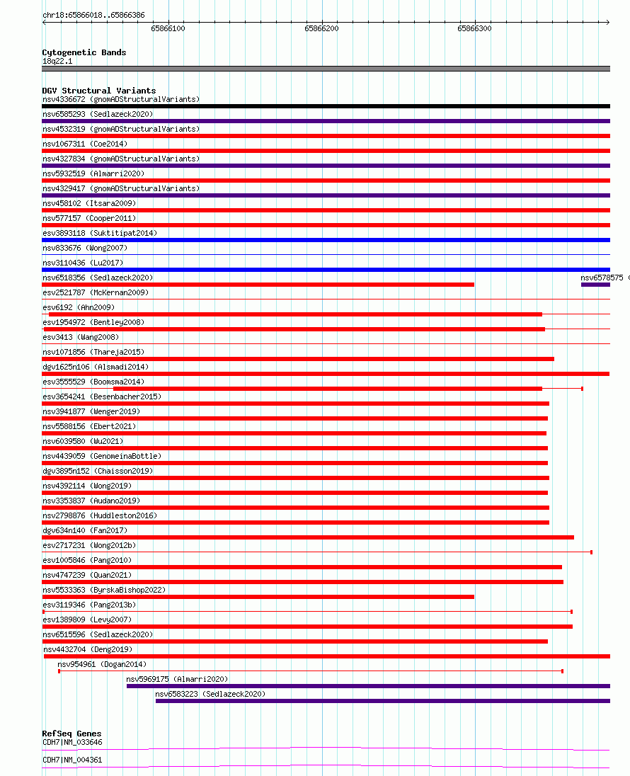Variant DetailsVariant: nsv1130376| Internal ID | 19253374 | | Landmark | | | Location Information | | | Cytoband | 18q22.1 | | Allele length | | Assembly | Allele length | | hg38 | 369 | | hg19 | 369 |