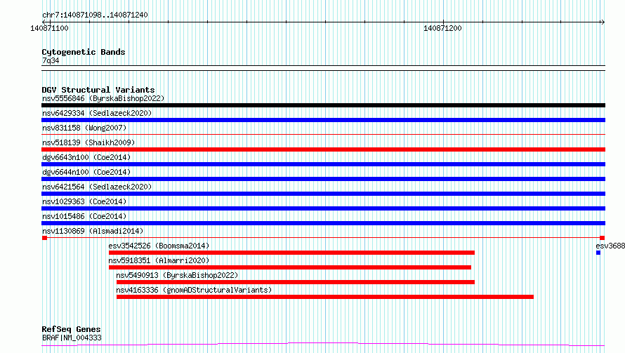 Variant DetailsVariant: nsv1130869| Internal ID | 19260717 | | Landmark | | | Location Information | | | Cytoband | 7q34 | | Allele length | | Assembly | Allele length | | hg38 | 143 | | hg19 | 143 |