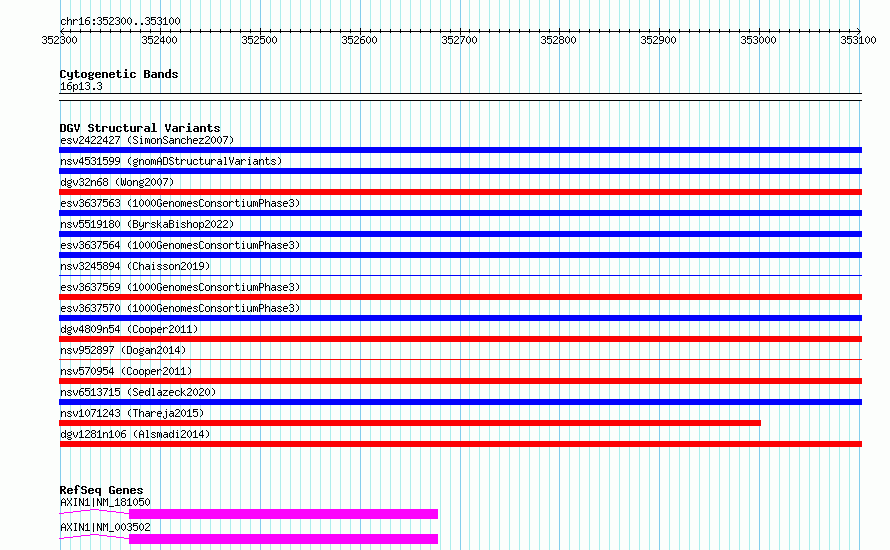 Variant DetailsVariant: nsv1131099| Internal ID | 19273071 | | Landmark | | | Location Information | | | Cytoband | 16p13.3 | | Allele length | | Assembly | Allele length | | hg38 | 801 | | hg19 | 801 |