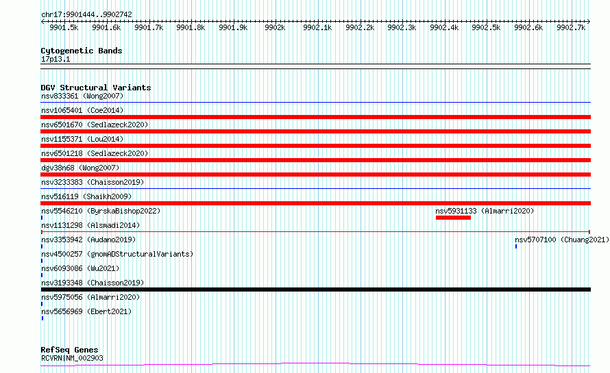 Variant DetailsVariant: nsv1131298| Internal ID | 19268031 | | Landmark | | | Location Information | | | Cytoband | 17p13.1 | | Allele length | | Assembly | Allele length | | hg38 | 1299 | | hg19 | 1299 |