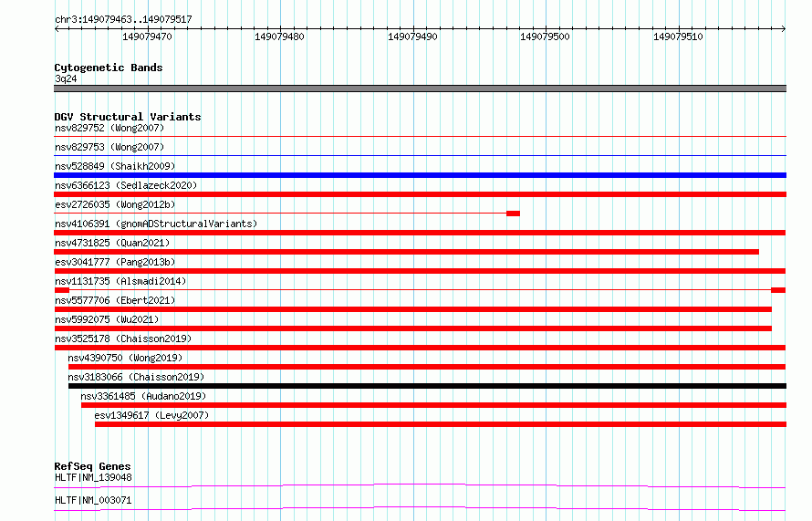 Variant DetailsVariant: nsv1131735| Internal ID | 19259843 | | Landmark | | | Location Information | | | Cytoband | 3q24 | | Allele length | | Assembly | Allele length | | hg38 | 55 | | hg19 | 55 |