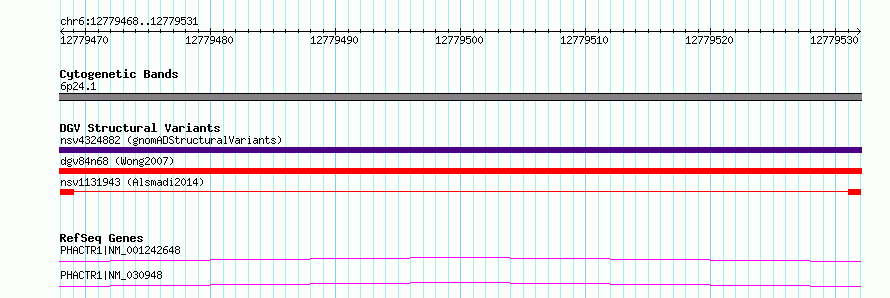Variant DetailsVariant: nsv1131943| Internal ID | 18906787 | | Landmark | | | Location Information | | | Cytoband | 6p24.1 | | Allele length | | Assembly | Allele length | | hg38 | 64 | | hg19 | 64 |