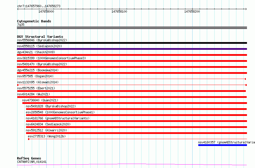 Variant DetailsVariant: nsv1132095| Internal ID | 19250757 | | Landmark | | | Location Information | | | Cytoband | 7q35 | | Allele length | | Assembly | Allele length | | hg38 | 314 | | hg19 | 314 |