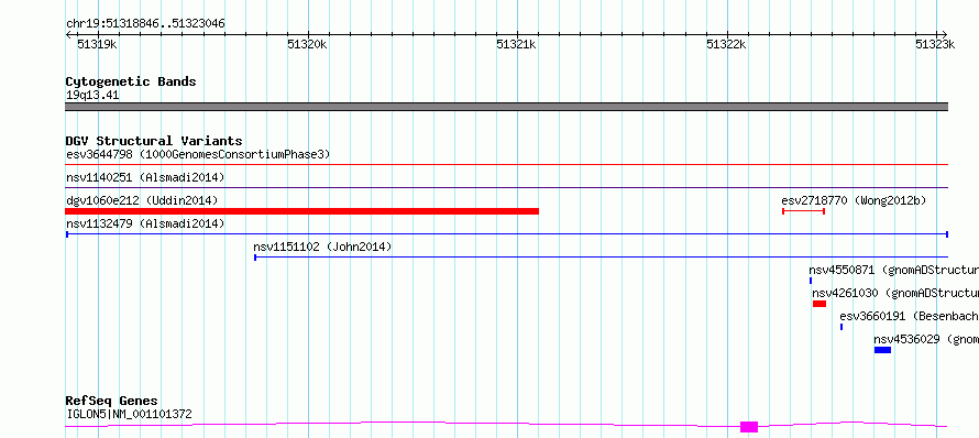 Variant DetailsVariant: nsv1132479| Internal ID | 18902494 | | Landmark | | | Location Information | | | Cytoband | 19q13.41 | | Allele length | | Assembly | Allele length | | hg38 | 4201 | | hg19 | 4201 |