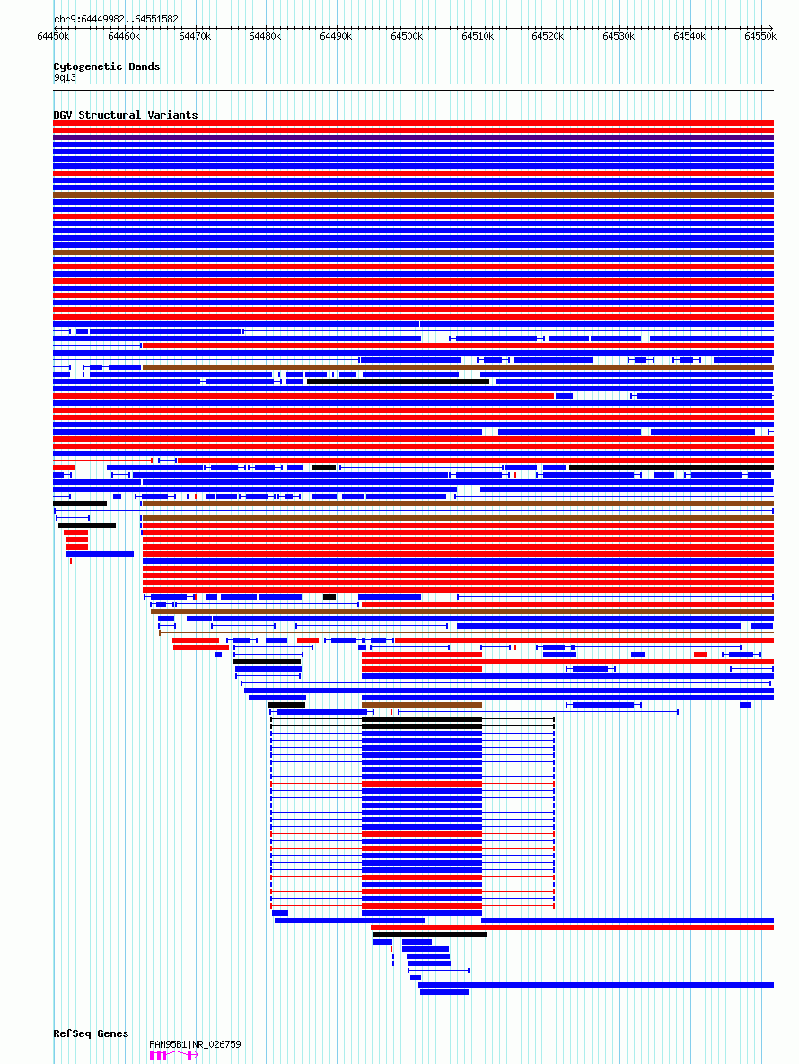 Variant DetailsVariant: nsv1132729| Internal ID | 19273718 | | Landmark | | | Location Information | | | Cytoband | 9q21.11 | | Allele length | | Assembly | Allele length | | hg38 | 101601 | | hg19 | 101601 |