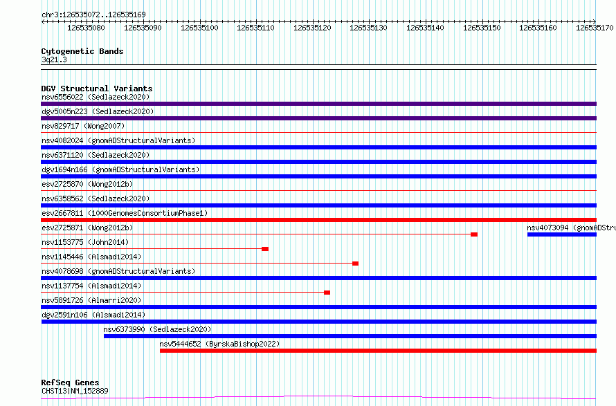 Variant DetailsVariant: nsv1133325| Internal ID | 19283992 | | Landmark | | | Location Information | | | Cytoband | 3q21.3 | | Allele length | | Assembly | Allele length | | hg38 | 98 | | hg19 | 98 |