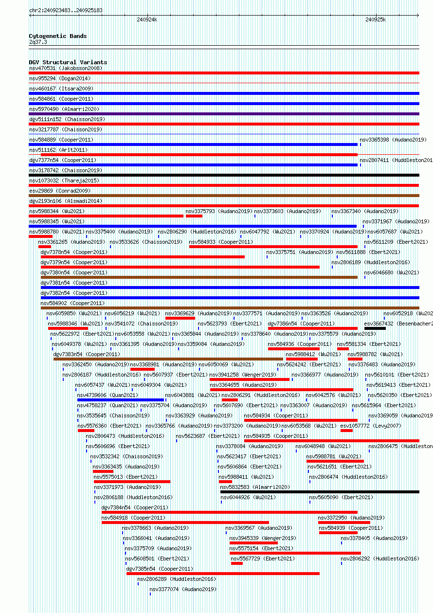 Variant DetailsVariant: nsv1133495| Internal ID | 19250704 | | Landmark | | | Location Information | | | Cytoband | 2q37.3 | | Allele length | | Assembly | Allele length | | hg38 | 1701 | | hg19 | 1701 |