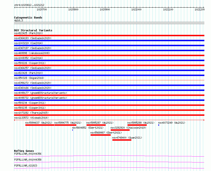 Variant DetailsVariant: nsv1133572| Internal ID | 19272159 | | Landmark | | | Location Information | | | Cytoband | 4p16.3 | | Allele length | | Assembly | Allele length | | hg38 | 601 | | hg19 | 601 |