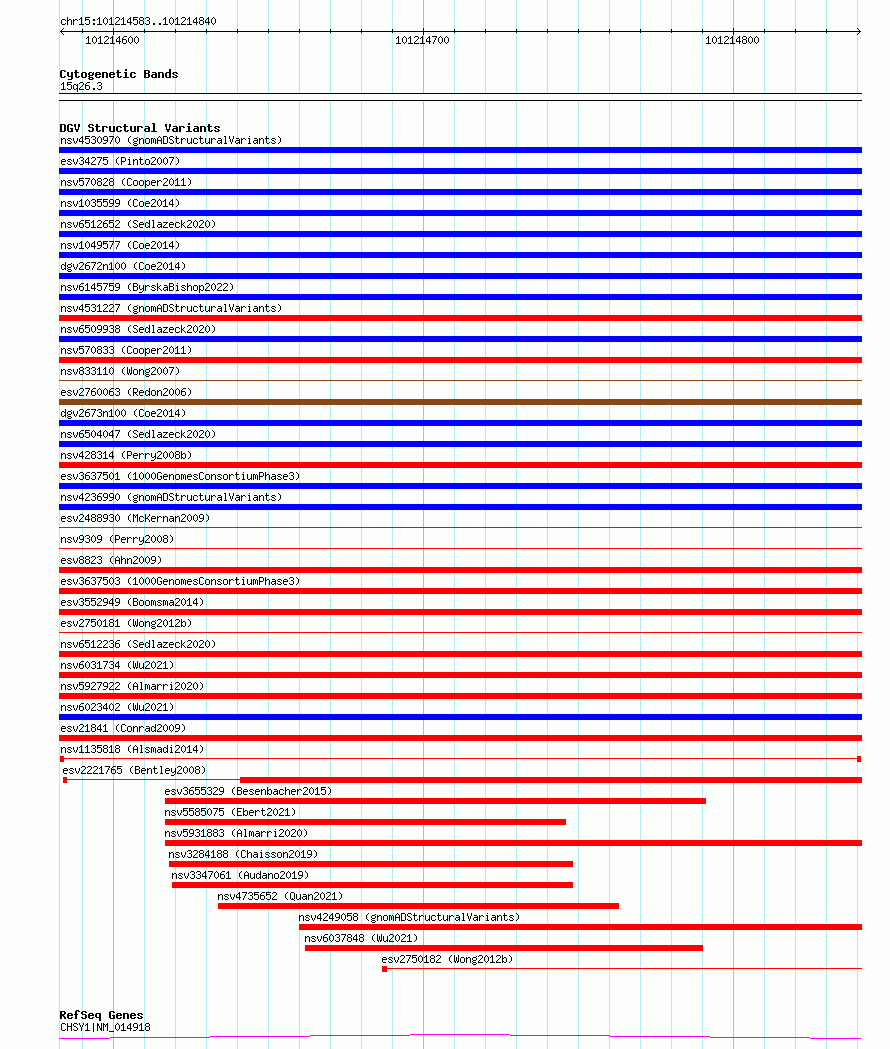 Variant DetailsVariant: nsv1135818| Internal ID | 19247832 | | Landmark | | | Location Information | | | Cytoband | 15q26.3 | | Allele length | | Assembly | Allele length | | hg38 | 258 | | hg19 | 258 |