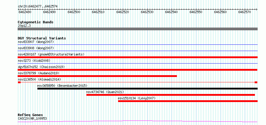 Variant DetailsVariant: nsv1136500| Internal ID | 19251905 | | Landmark | | | Location Information | | | Cytoband | 20p12.3 | | Allele length | | Assembly | Allele length | | hg38 | 98 | | hg19 | 98 |