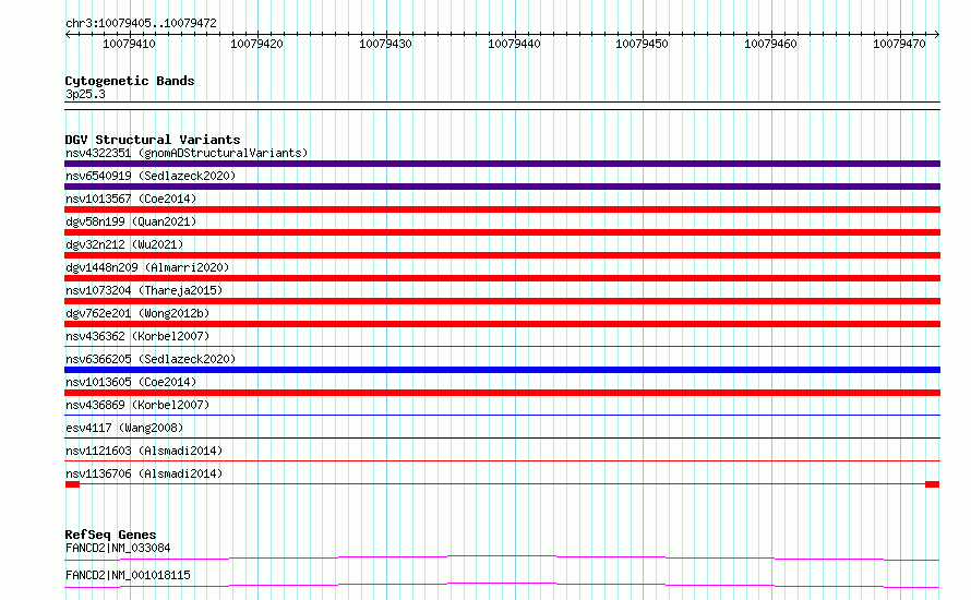 Variant DetailsVariant: nsv1136706| Internal ID | 19281537 | | Landmark | | | Location Information | | | Cytoband | 3p25.3 | | Allele length | | Assembly | Allele length | | hg38 | 68 | | hg19 | 68 |